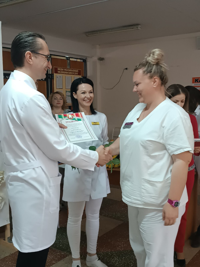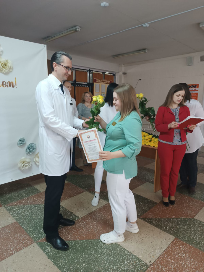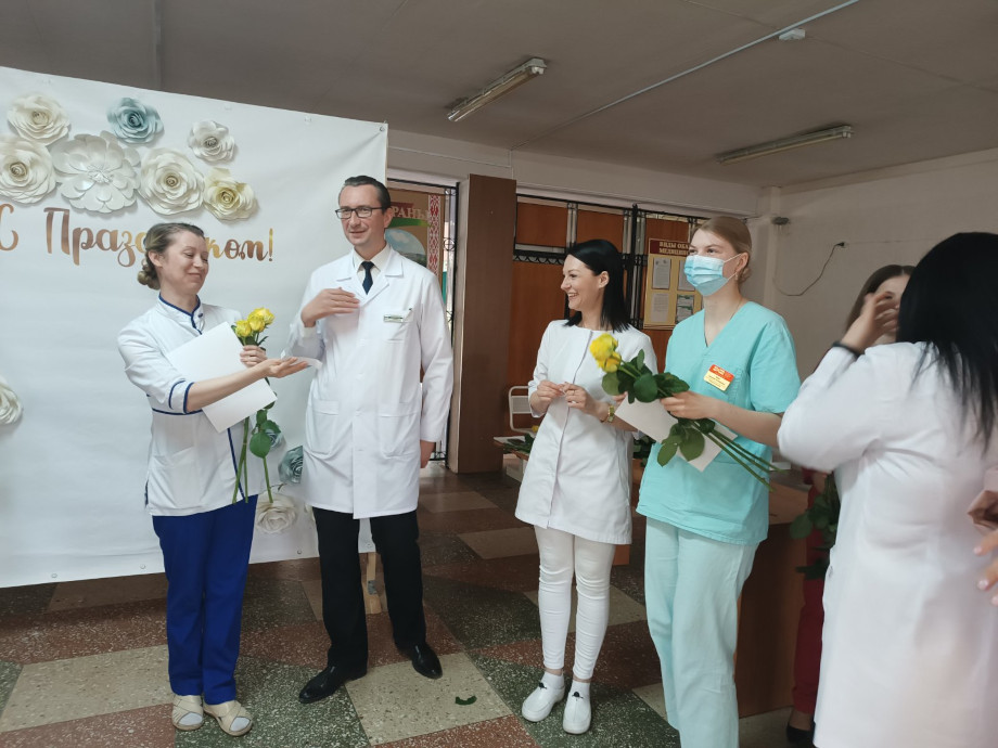 12 мая весь мир отмечает День медицинской сестры. В этот день поздравляют тех, кто оказывает профессиональную медицинскую помощь не зависимо от погодных условий, дня недели и времени суток. Эти профессионалы с неподдельной настоящей искренностью оказывают помощь всем нуждающимся. В честь такого дня в УЗ «Минской областной клинической больнице» администрация совместно с профсоюзным лидером провела праздничную пятиминутку в холле корпуса.