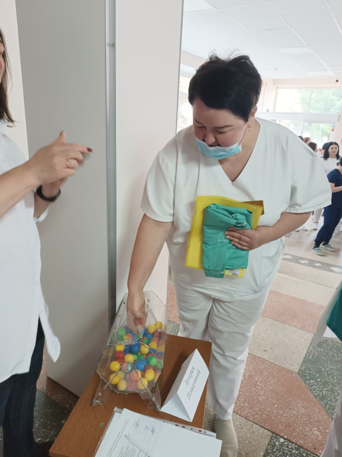 Организовали розыгрыш «Лотерей Пожеланий». Каждый присутствующий имел возможность принять участие. Кому-то выпал «Счастливый билетик» с личными пожеланиями от главного врача, селфи с главным врачом, кому-то сладкий приз от профсоюза.