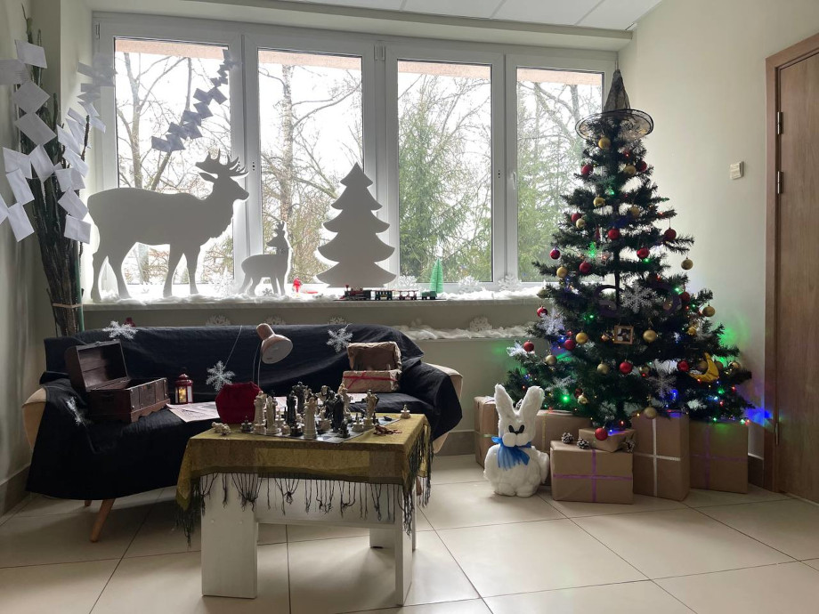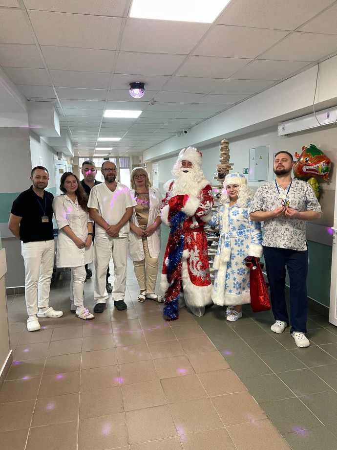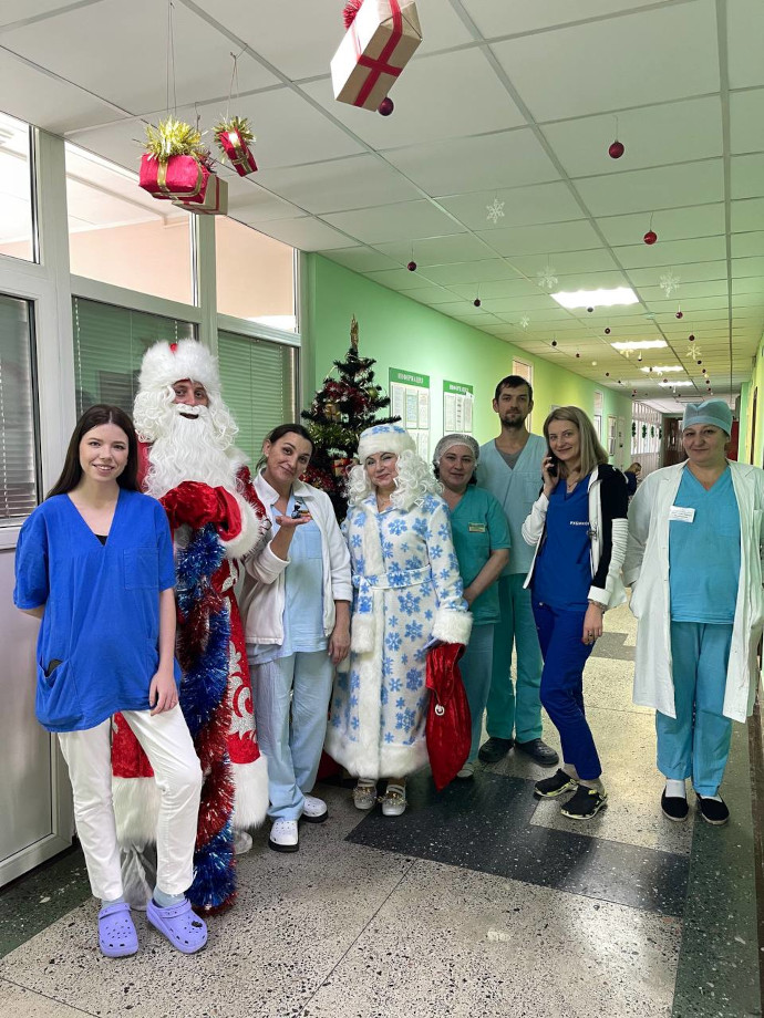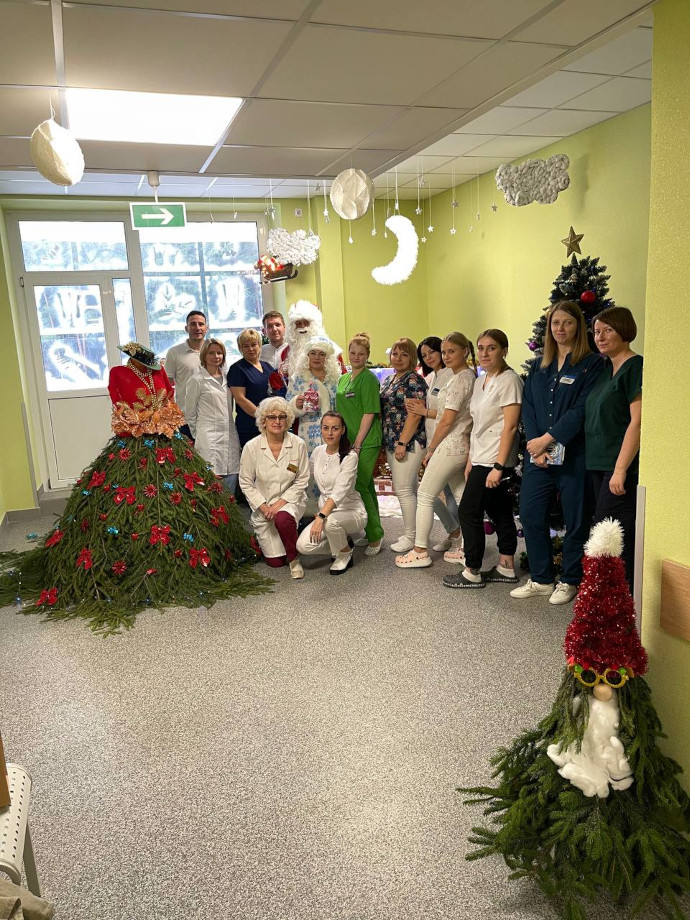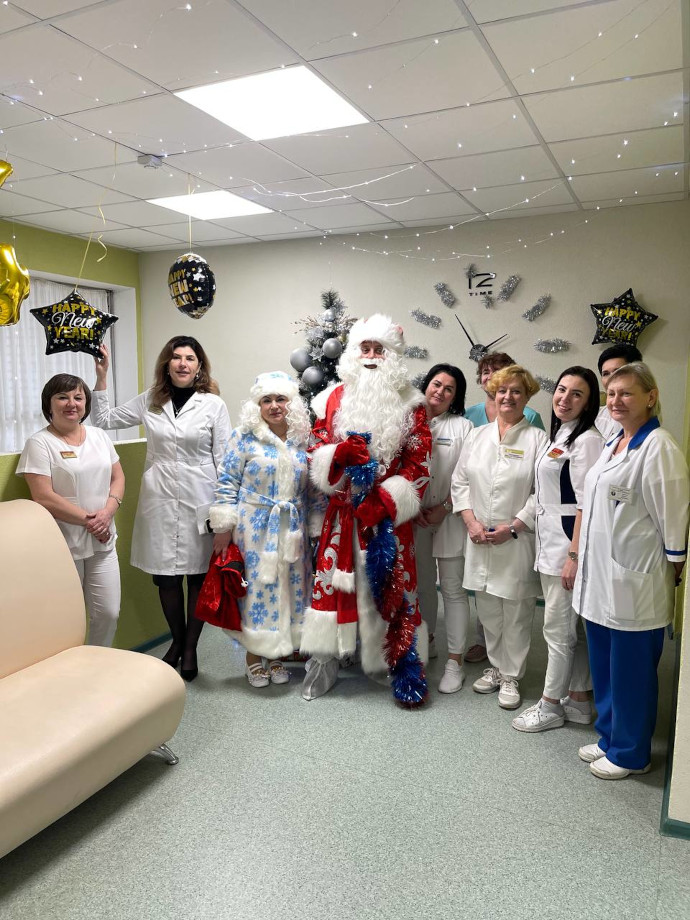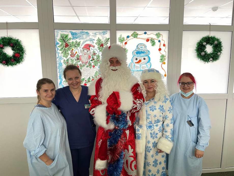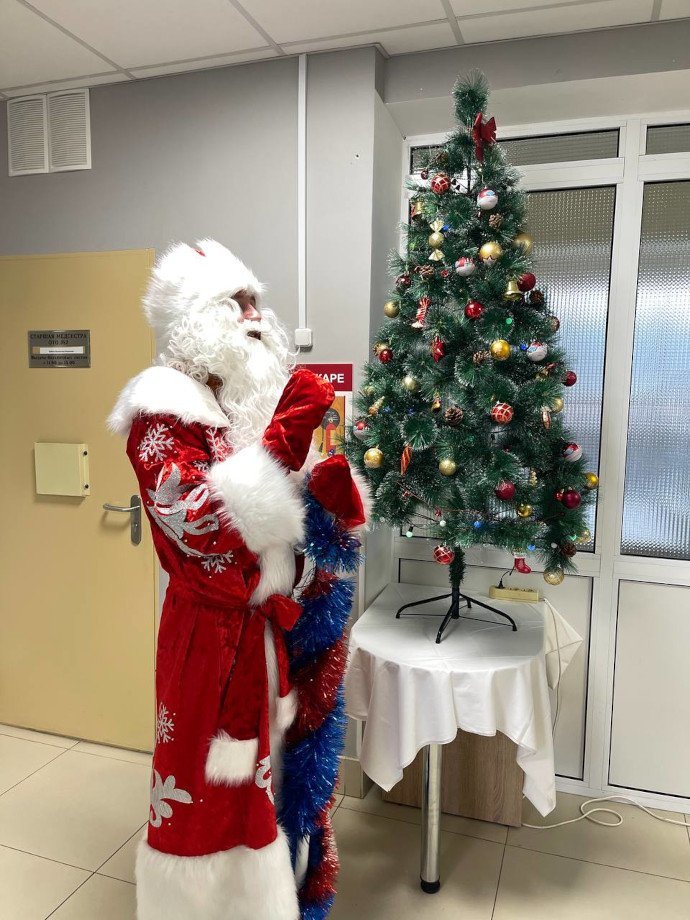 Дед Мороз со своей внучкой Снегурочкой в очередной раз не смогли проехать мимо такой красоты. Припарковав свои сани с оленями, они обошли все отделения больницы. Сотрудникам пришлось вспомнить и рассказать новогодние стишки, вместе пели песни про ёлочку, даже пациенты не удержались подпевали. Праздничная атмосфера пронеслась по всем коридорам и кабинетам, запала в душу каждому присутствующему.