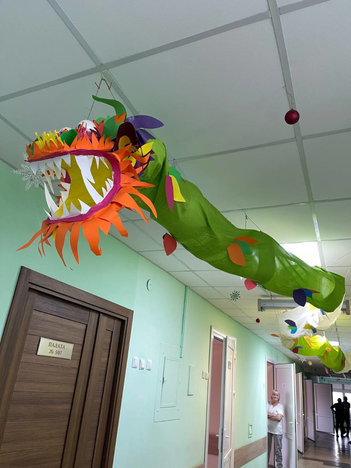 Как обычно по старой и доброй традиции сотрудники МОКБ проявляли свой креатив и потенциал - создали праздничную Новогоднюю атмосферу украсив свои отделения мишурой, шариками, пушистым елями, импровизированными фотозонами, каминами, символом года дракончиками, приподняв тем самым настроение и себе и пациентам.