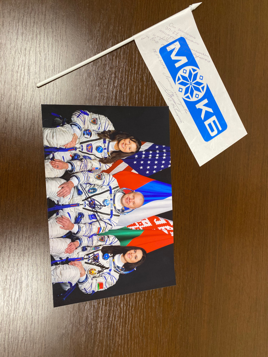Знаменитый космонавт родился в городе Червень Минской области. Олег Новицкий не раз посещал учреждение с официальным визитом, делился эмоциями от своей деятельности и планами на будущее. В одном из них, пообещал взять флаг учреждения в космос. Обещание сдержал. Лично привез флаг руководству учреждения и подписал его. Встреча прошла в приятной обстановке, сотрудники задавали космонавту вопросы, просмотрели видеоролик про последние экспедиции.