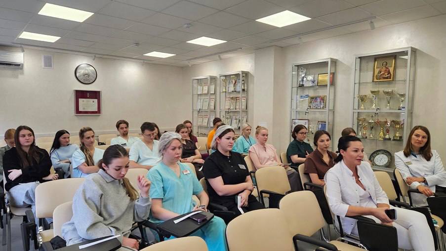 09.10.25 в Минской ОКБ состоялась встреча председателя Минской областной организации БПРЗ Катовой Ольги Николаевны с молодыми специалистами.Это мероприятие собрало сотрудников,отработавших год на первом рабочем месте.Цель-обсуждение вопросов,касающихся решения волнующих проблем молодежи в сфере здравоохранения.Один из важных вопросов-закрепление молодых специалистов в области.