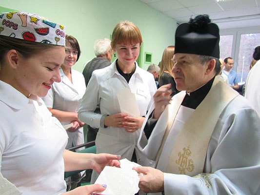 В рамках связей с религией для учреждения здравоохранения «Минская областная клиническая больница» стало уже традицией общение с католическим архиепископом-митрополитом Минско-Могилёвским Тадеушем Кондрусевичем.