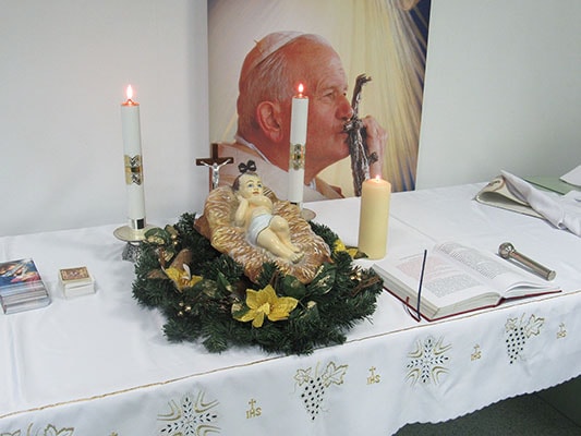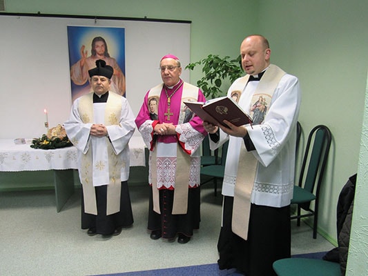 Тадеуш Кондрусевич поздравил всех с Рождеством и Новым годом. Пожелал добра, здоровья, веры в будущее. Всем присутствующим были розданы облатки. А деление друг с другом этими облатками - хлебом символично любви к своему ближнему, единству всех, победе добра над злом.