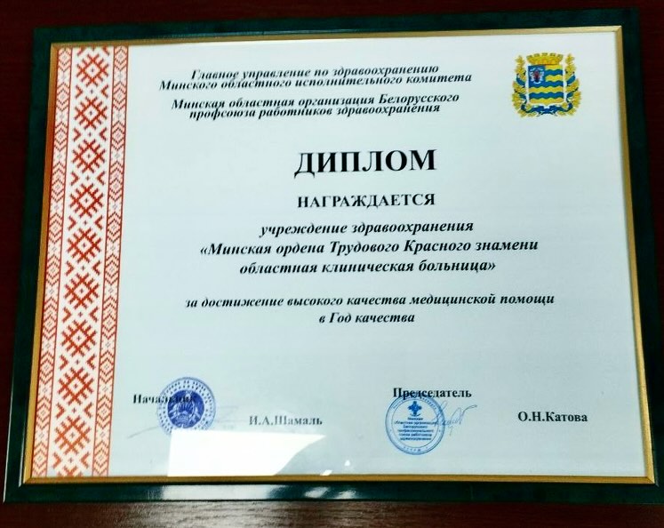 Высокая награда коллектива Минской областной клинической больницы. Достойная оценка тяжелой многолетней работы!