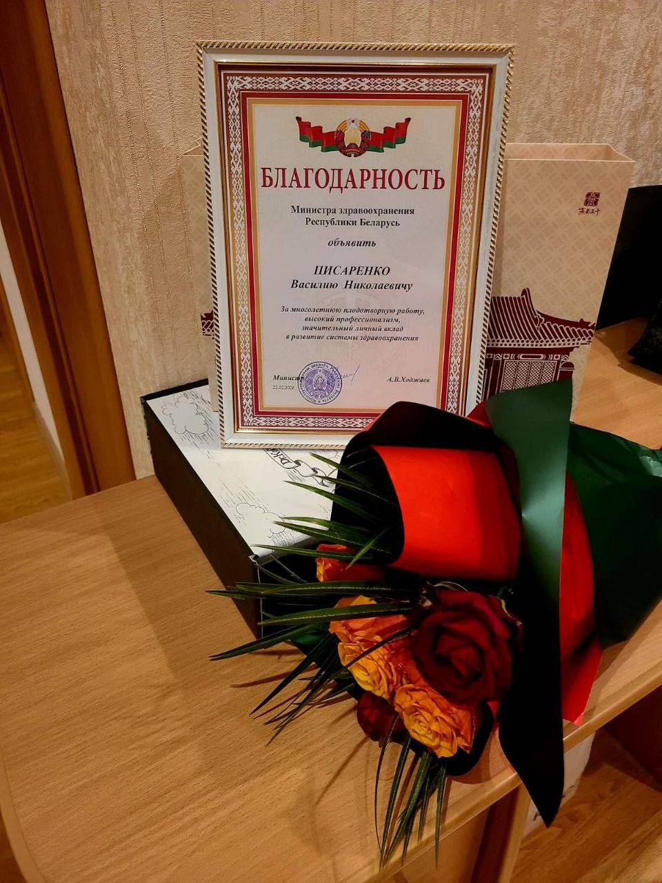 Благодарность Министерства здравоохранения Республики Беларусь за многолетнюю плодотворную работу, высокий профессионализм, значительный личный вклад в развитие системы здравоохранения объявлена Василию Писаренко, врачу уьтразвуковой диагностики (заведующему) отделения ультразвуковой диагностики;