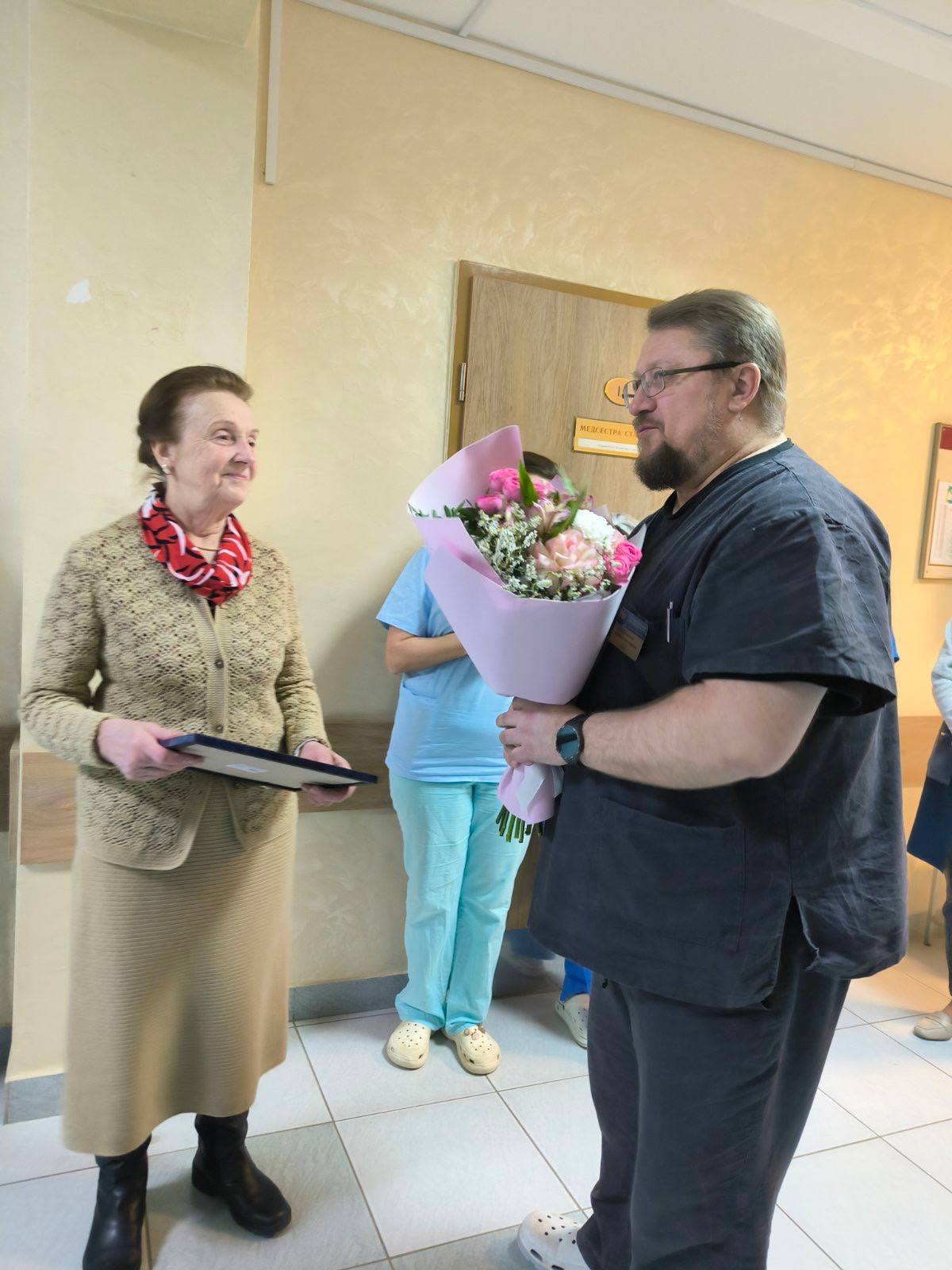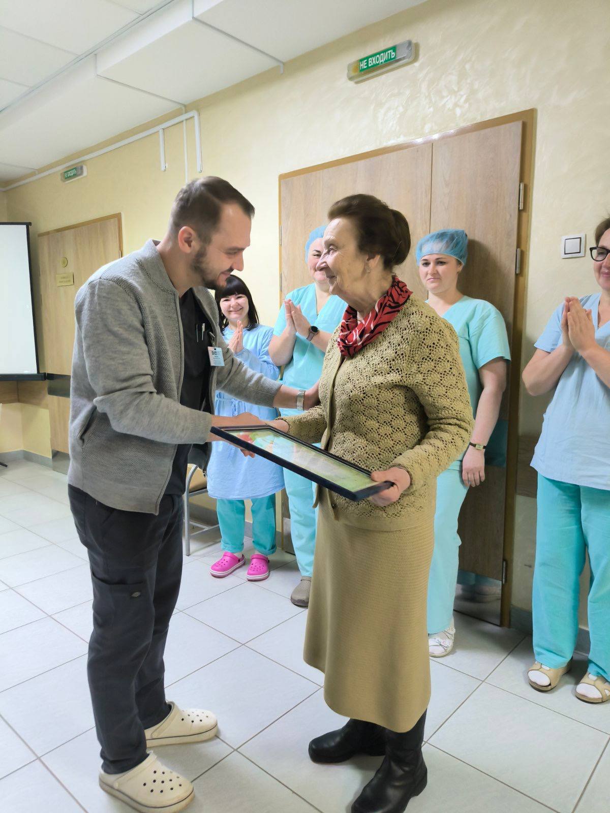 На торжественной церемонии благодарили,вспоминали и желали всего самого доброго администрация больницы,первичная профсоюзная организация и самые близкие коллеги — команда Эндоскопического отделения.Те, кто продолжает ее дело и хранит переданные традиции мастерства.Её вклад в спасение тысяч пациентов,в обучение специалистов и развитие медицинской науки неоценим.